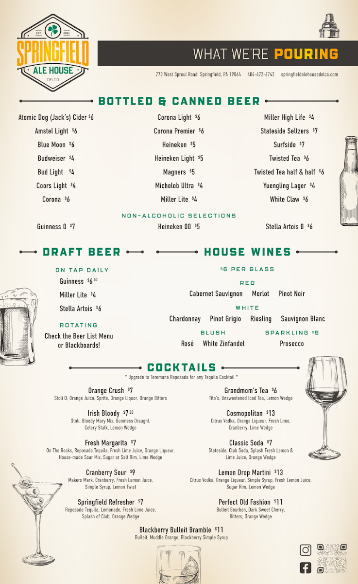 At Springfield Ale House Delco, you'll find a menu that's as inviting as the atmosphere itself. Whether you're in the mood for hearty comfort food or something lighter, the options here are sure to hit the spot. From their signature burgers to their crisp salads, each dish is made with fresh ingredients and served with a side of warmth and hospitality. If you're craving a delicious, flavorful meal, you’ll definitely want to explore the bold offerings of the Springfield Ale House Delco Menu. Whether you're stopping by for lunch, dinner, or just a quick bite, there's something for everyone to enjoy. Pair your meal with a craft beer, and you’ve got the perfect dining experience.